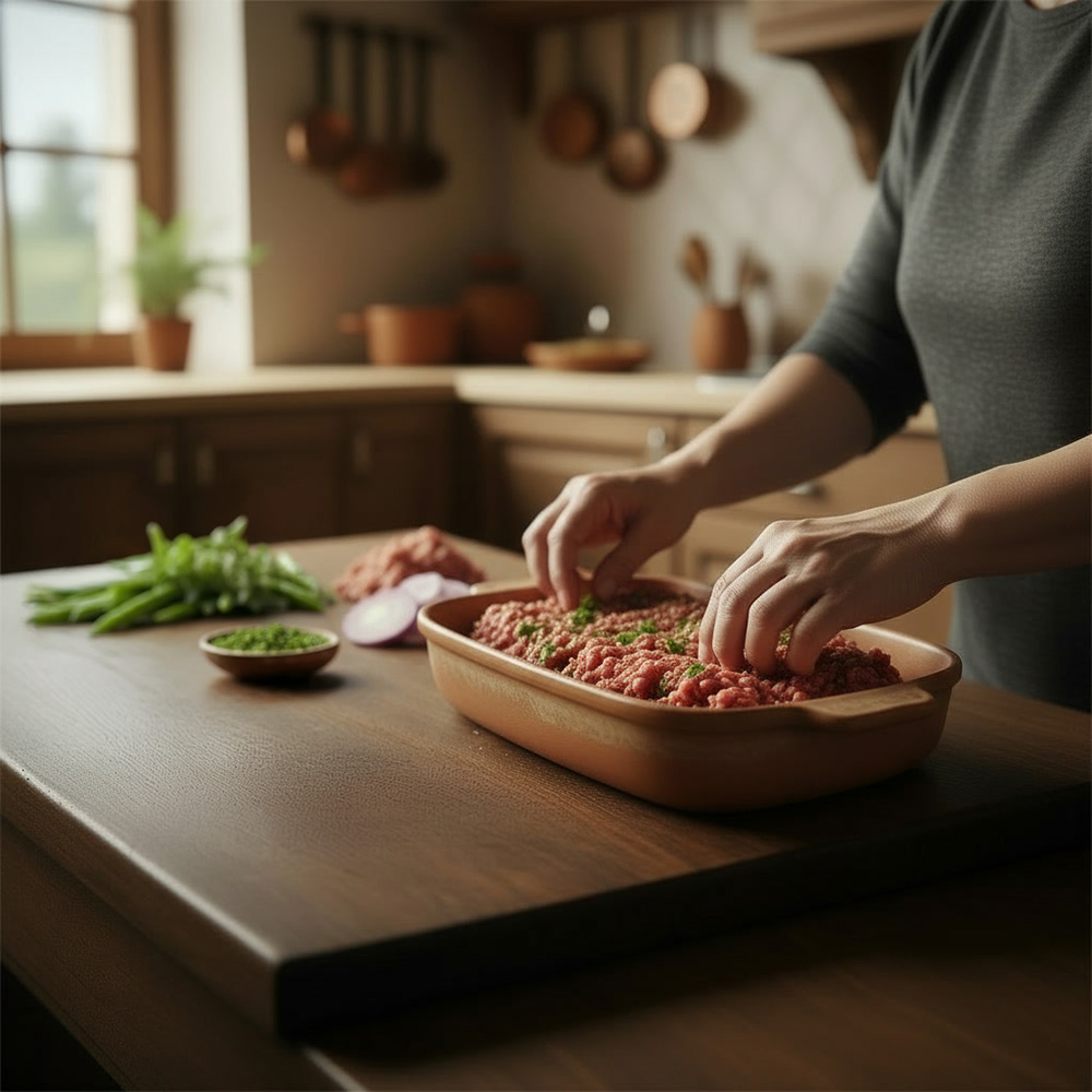 - Mit Salz, Pfeffer, Paprikapulver und optional Thymian oder Majoran würzen.