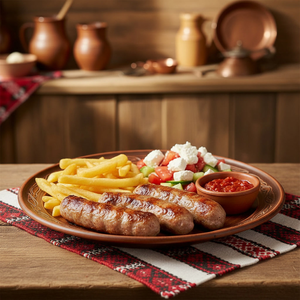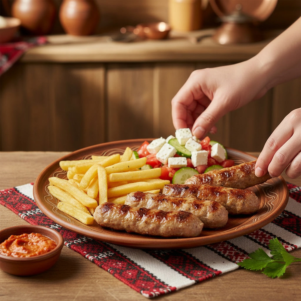 Kebapche werden in Bulgarien oft mit Shopska-Salat, Luteniza (Paprikapaste) oder gegrilltem Brot serviert.