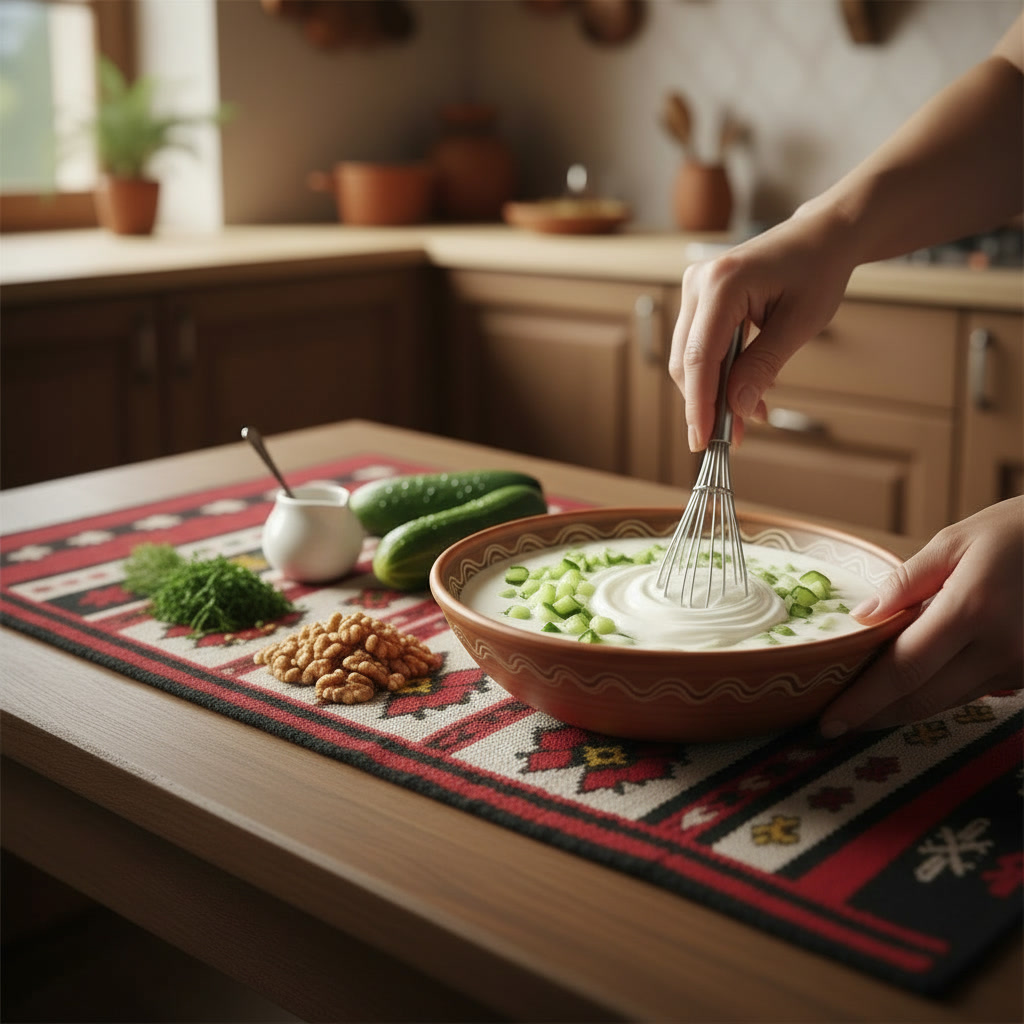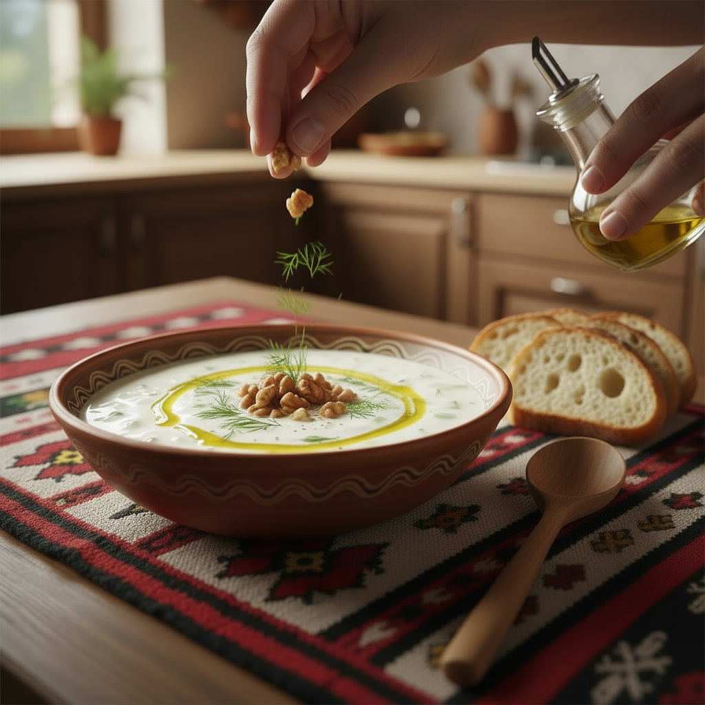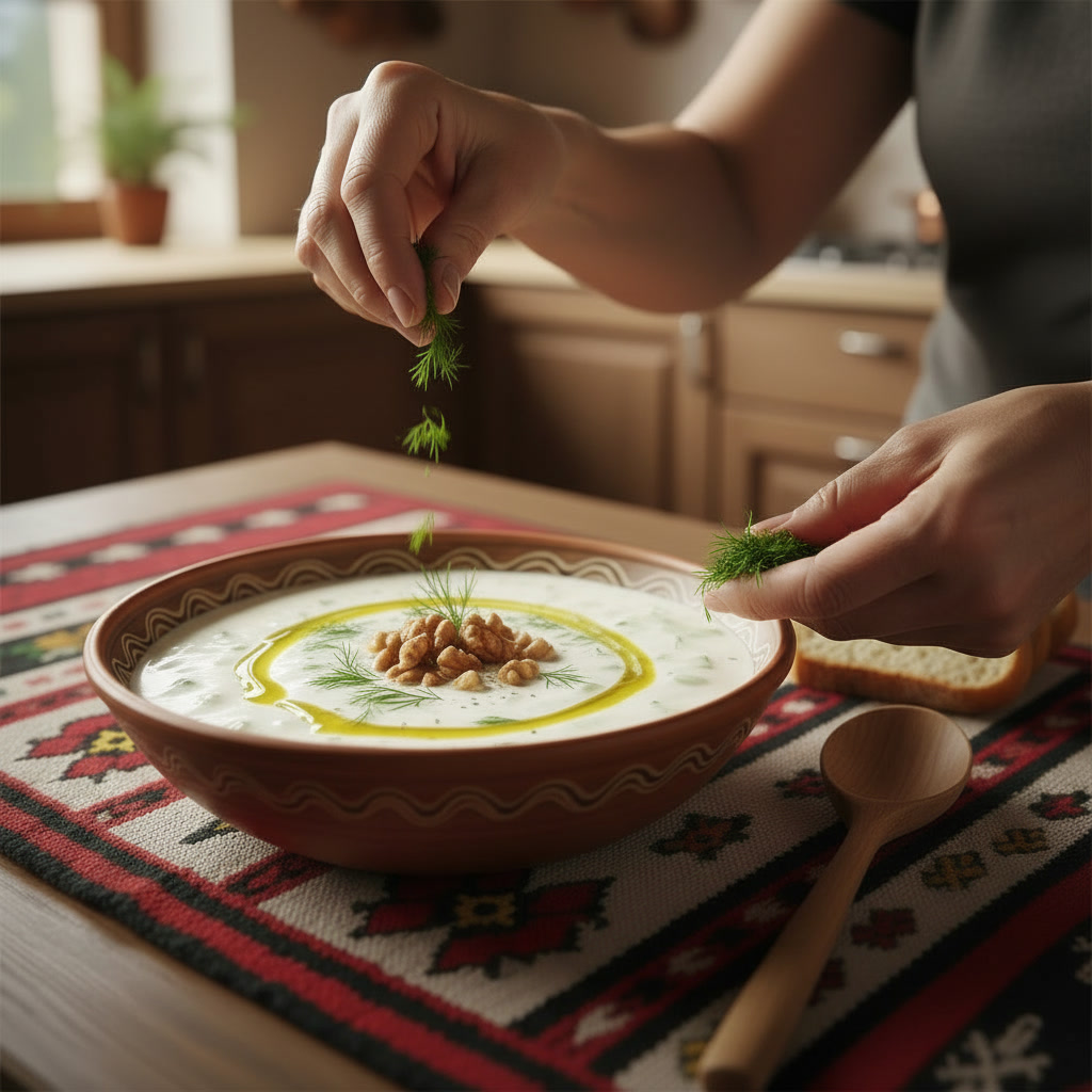 Tarator wird traditionell eiskalt serviert und passt hervorragend als Vorspeise oder Beilage zu Gerichten wie Kebapche oder Musaka. In Bulgarien wird er oft mit frischem Weißbrot gereicht.